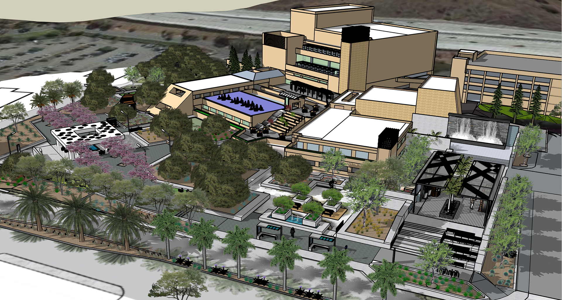 AQUA GARDEN: PLAZA, PERGOLA & WATER FEATURE